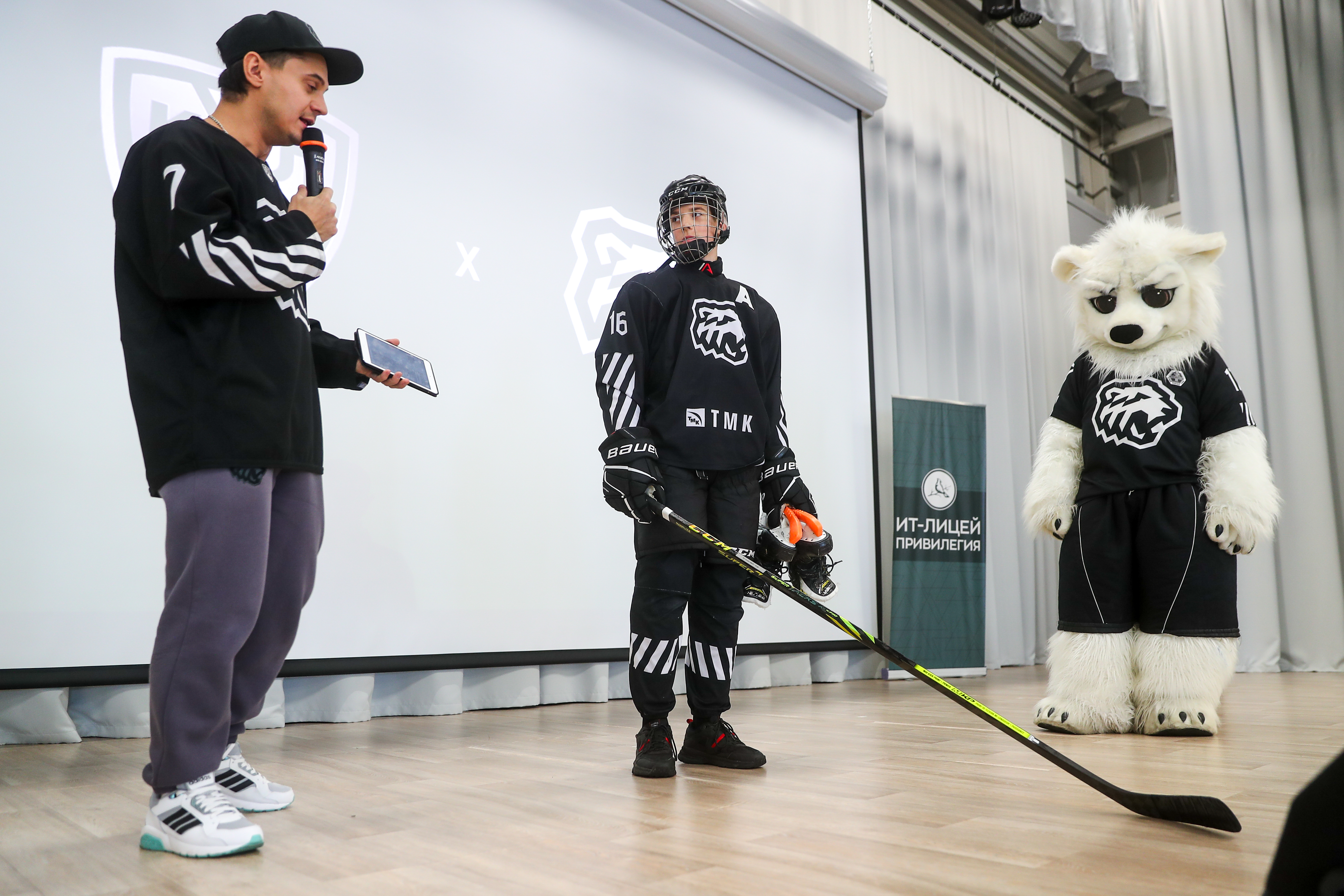 Форвард «черно-белых» провёл в КХЛ больше 650 матчей. О своём хоккейном пути и об игре, которая влюбляет в себя миллионы людей, Владимир и рассказал юным лицеистам. Нападающий также ответил на все вопросы молодых болельщиков, провёл автограф-сессию и сфотографировался со всеми желающим. Помогал ему в этом талисман клуба Белый Медведь, а атмосферу мероприятия обеспечили девушки из группы поддержки «Трактора».