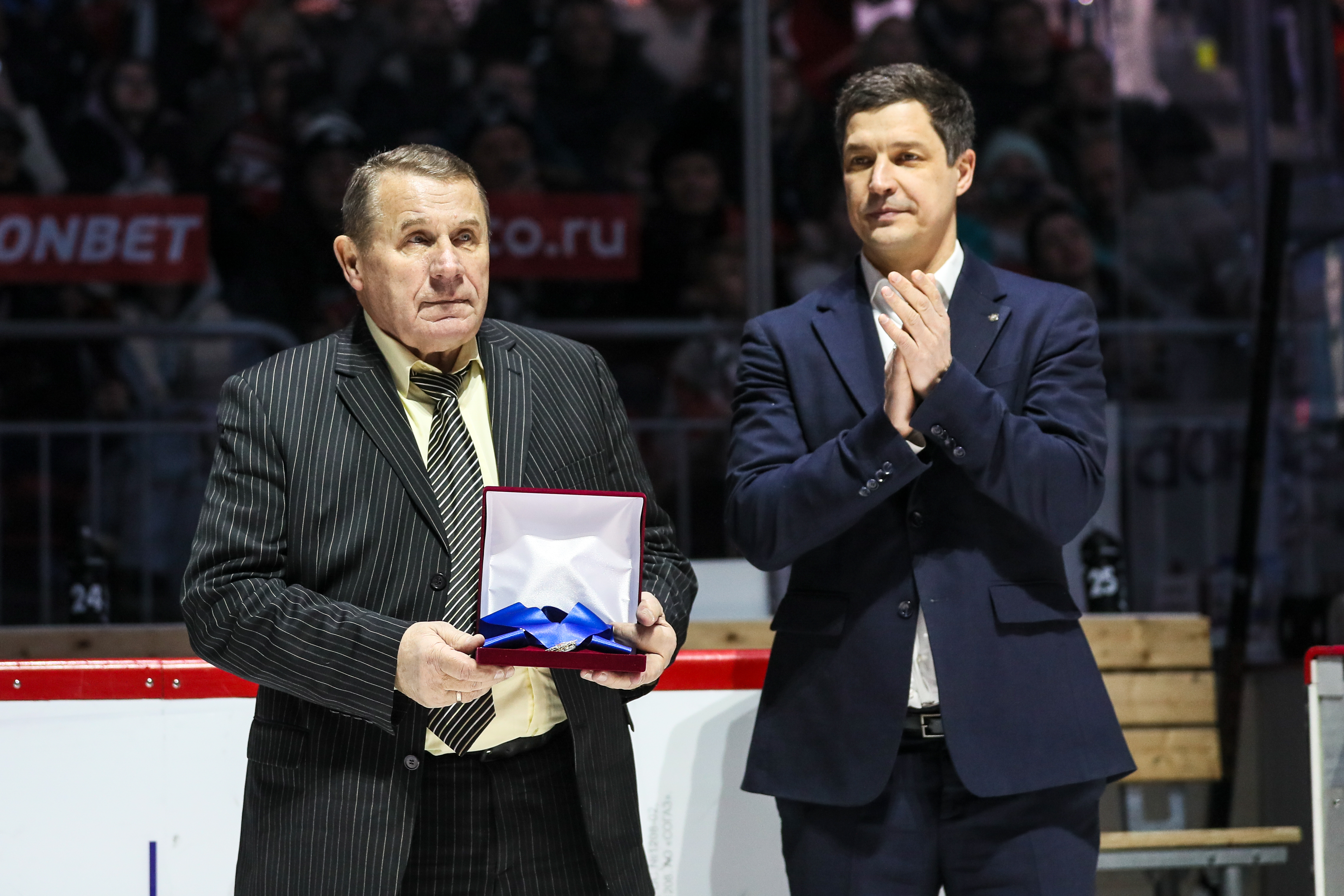 Перед началом поединка генеральный директор клуба Иван Савин вручил ветерану «Трактора» Николаю Макарову медаль «За верность хоккею» от Федерации хоккея России. Напомним, что в декабре Николаю Михайловичу исполнилось 75 лет.