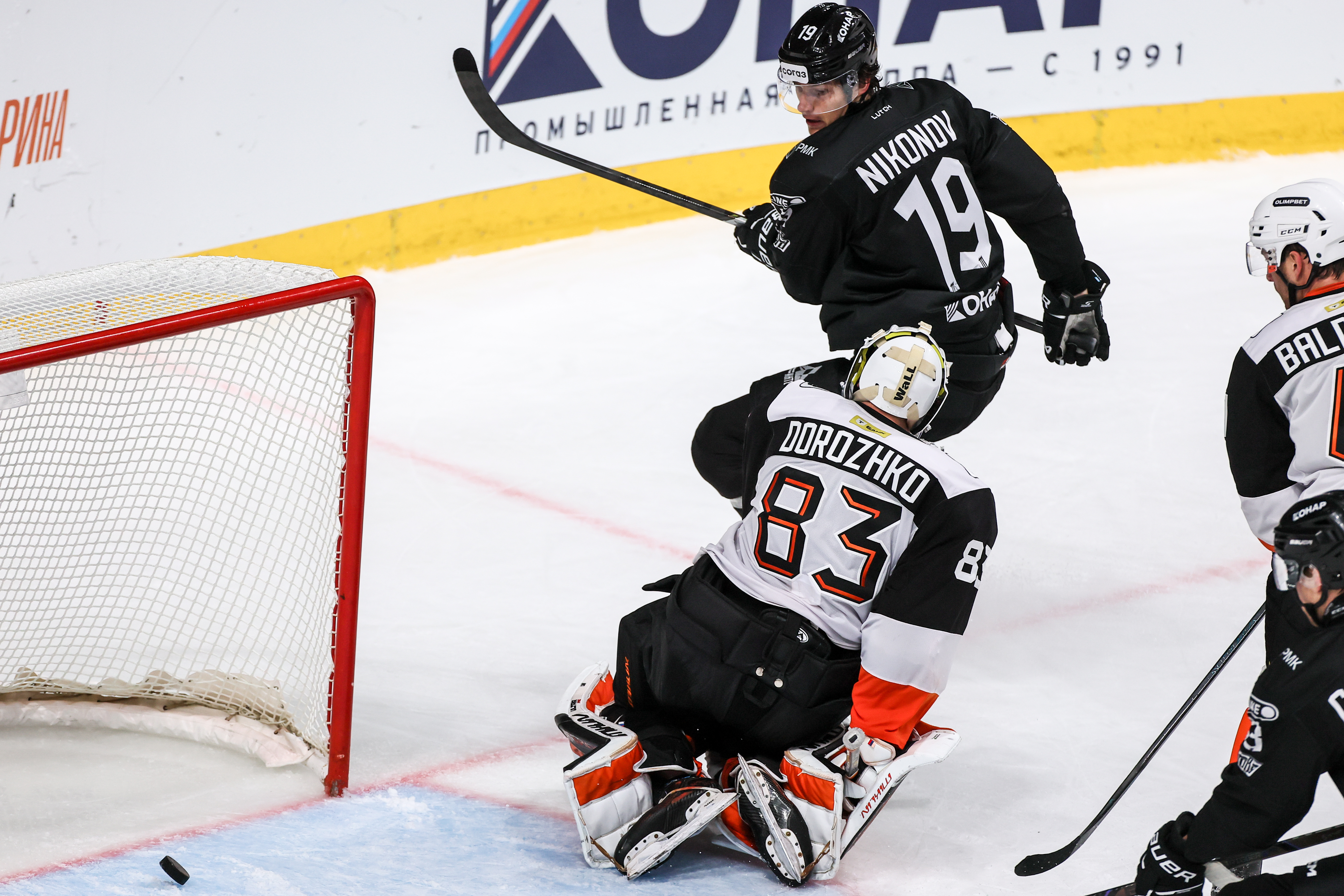 «Трактор» и «Амур» в очной встрече разыграли Кубок губернатора Челябинской области в финале. В первом периоде после нескольких обоюдных атак «чёрно-белые» разыграли классную комбинацию, завершившуюся точнейшим броском Джордана Гросса. Максим Дорожко был бессилен.